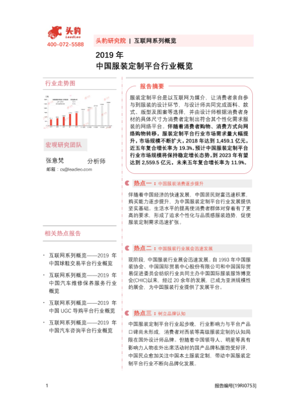 【头豹研究院】【2019】2019年中国服装定制平台行业概览-32页