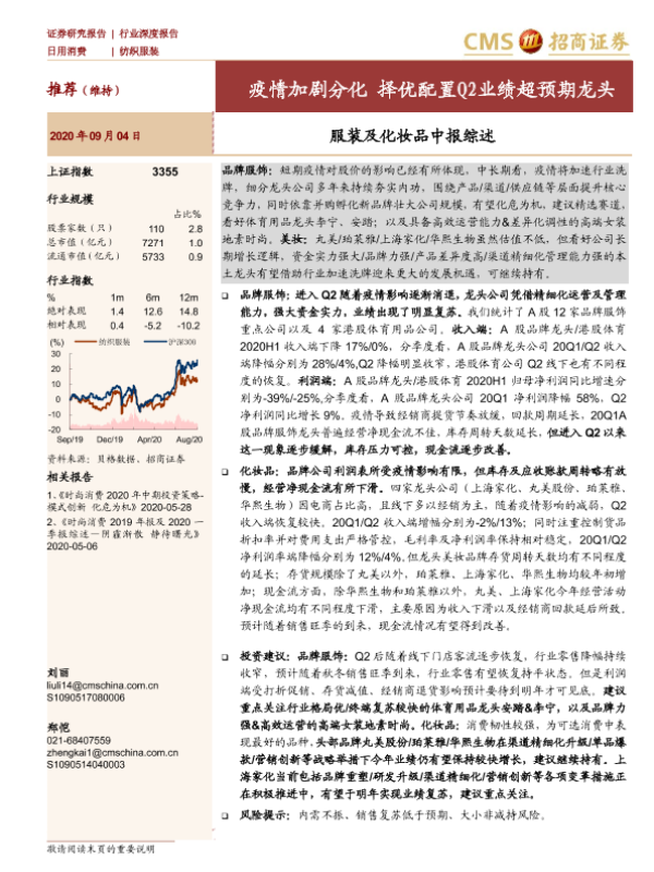 【海通证券】【20200904】20200904-招商证券-服装及化妆品中报综述:疫情加剧分化 择优配置Q2业绩超预期龙头-17页