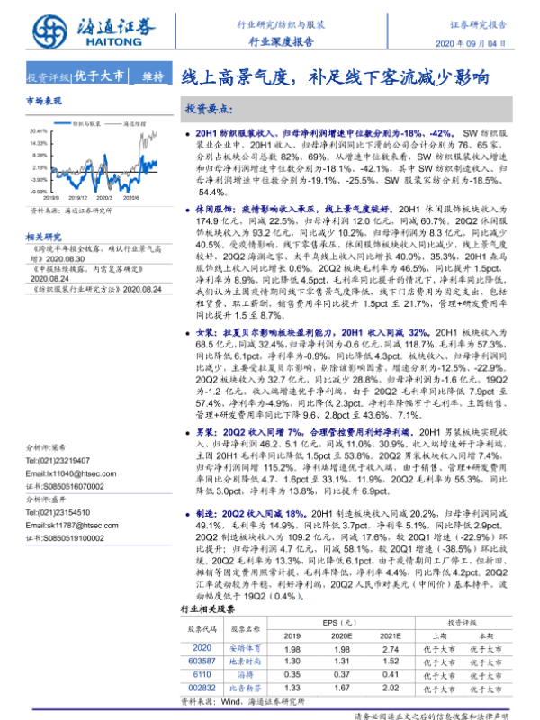 【海通证券】【20200904】纺织与服装行业深度报告:线上高景气度,补足线下客流减少影响-26页