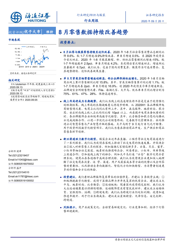 【海通证券】【20200920】20200920-海通证券-纺织与服装行业周报:8月零售数据持续改善趋势-7页
