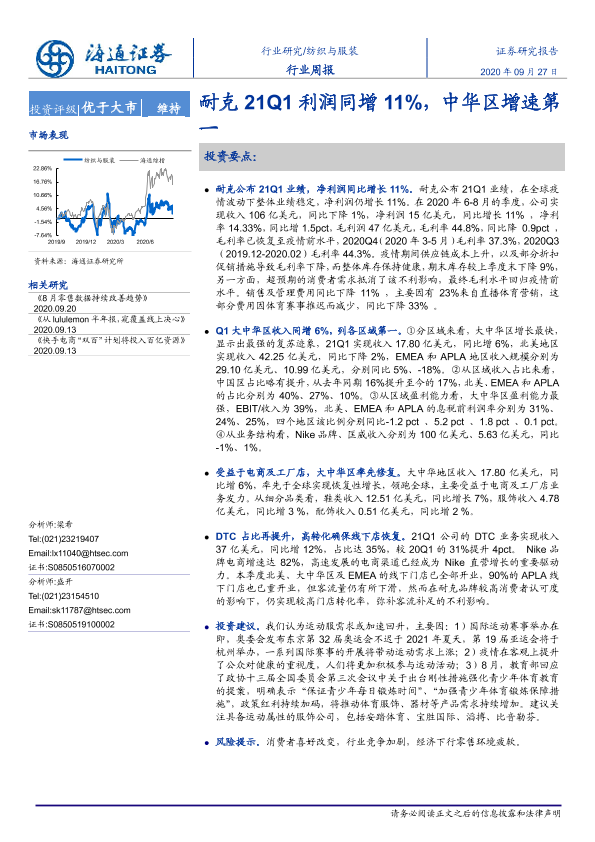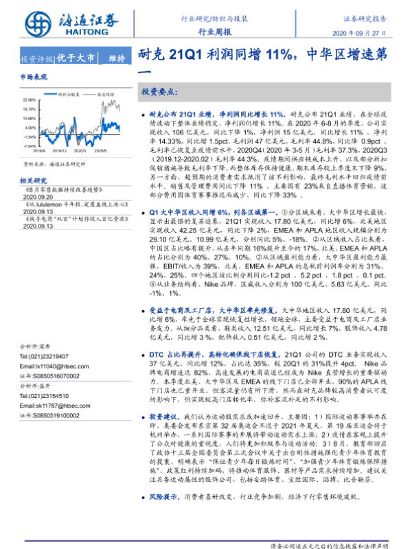 【海通证券】【20200927】纺织与服装行业周报:耐克21Q1利润同增11%,中华区增速第一-7页