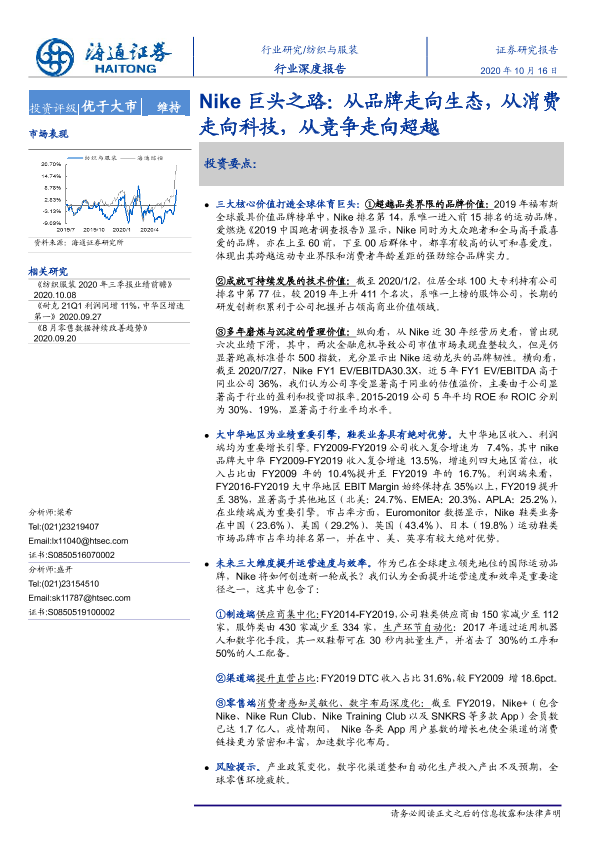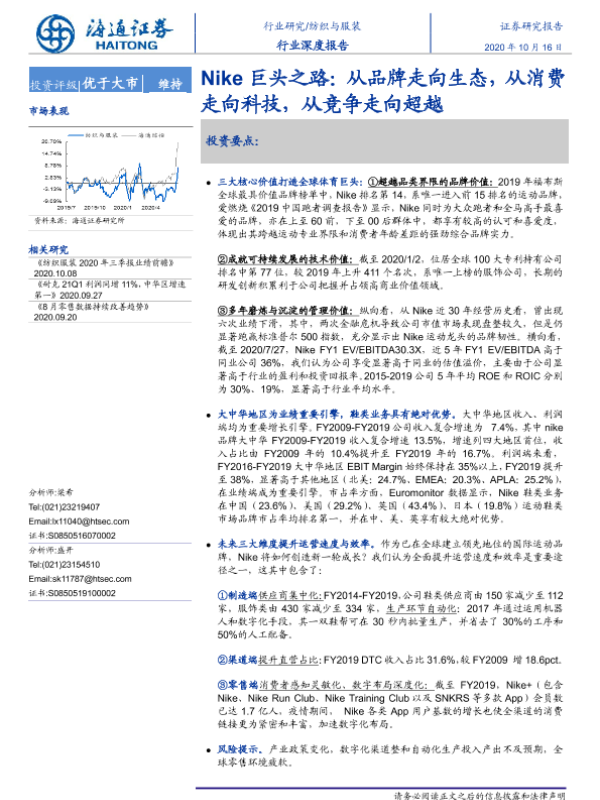 【海通证券】【20201016】纺织与服装行业深度报告:Nike巨头之路:从品牌走向生态,从消费走向科技,从竞争走向超越-32页