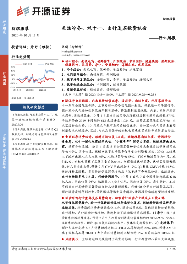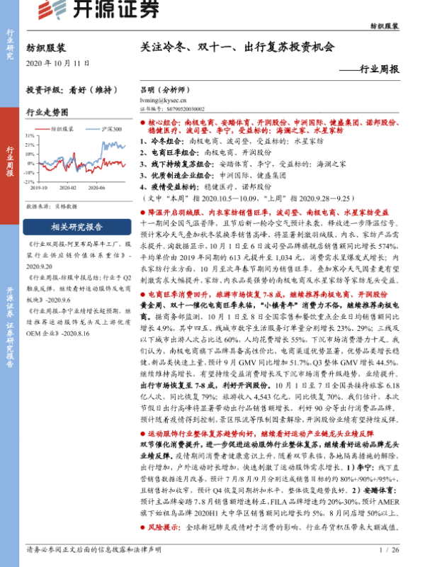 【开源证券】【20201011】纺织服装行业周报:关注冷冬、双十一、出行复苏投资机会-26页