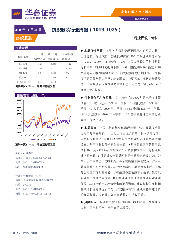 【华鑫证券】【20201026】20201026-华鑫证券-纺织服装行业周报-11页