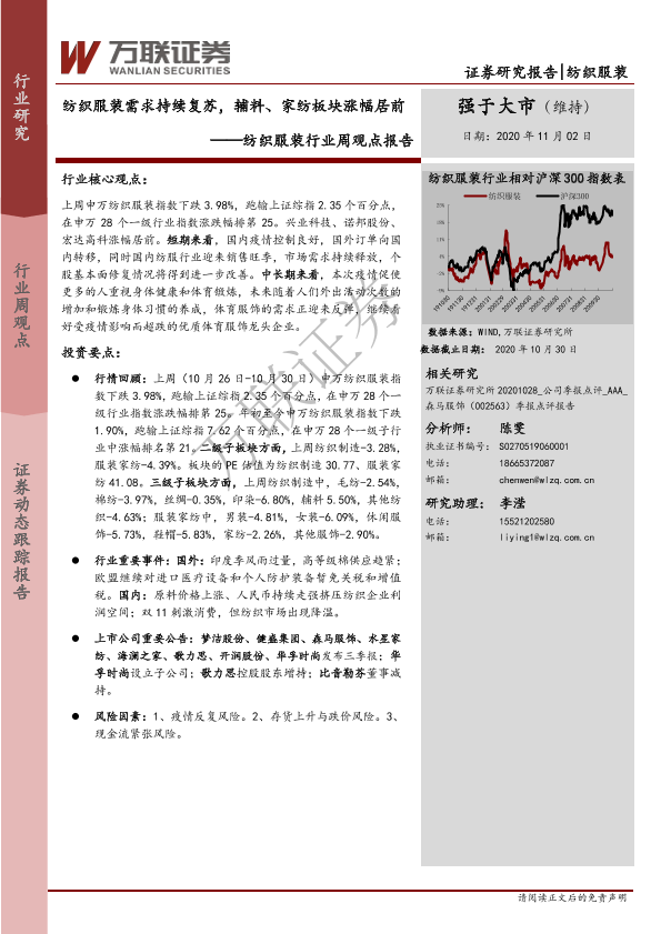 【万联证券】【20201102】纺织服装行业周观点报告:纺织服装需求持续复苏,辅料、家纺板块涨幅居前-9页