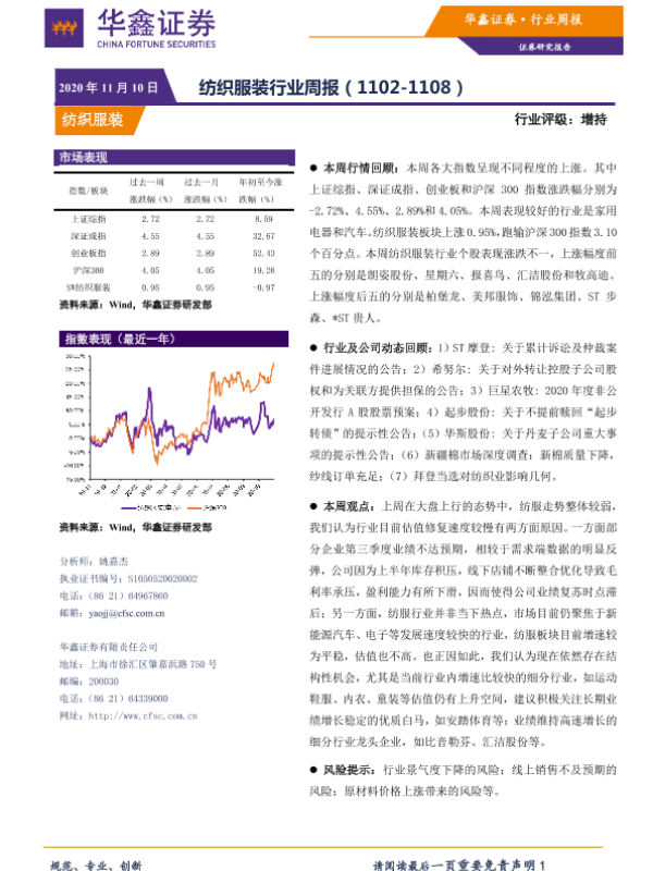 【华鑫证券】【20201110】20201110-华鑫证券-纺织服装行业周报-13页