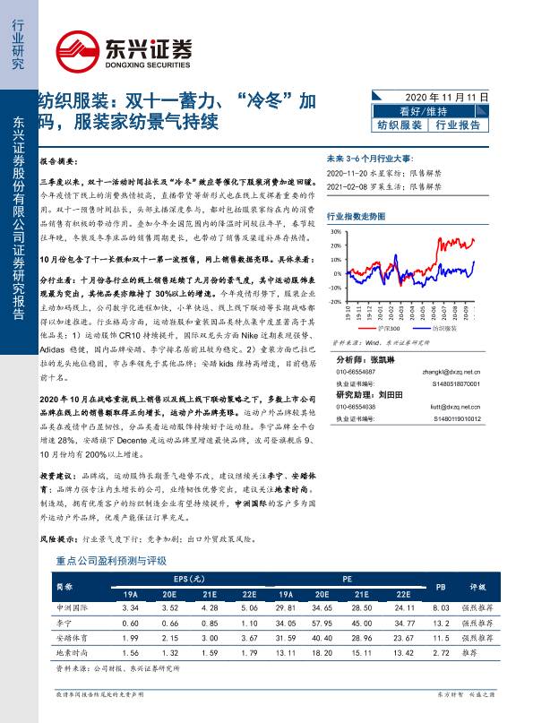 【东兴证券】【20201111】纺织服装行业报告:双十一蓄力、“冷冬”加码,服装家纺景气持续-11页