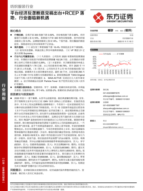 【东方证券】【20201116】纺织服装行业:平台经济反垄断意见稿出台+RCEP 落地,行业面临新机遇-9页