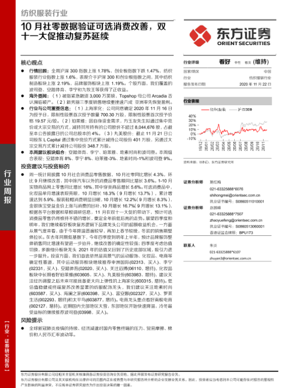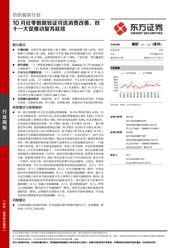【东方证券】【20201122】纺织服装行业:10月社零数据验证可选消费改善,双十一大促推动复苏延续-10页