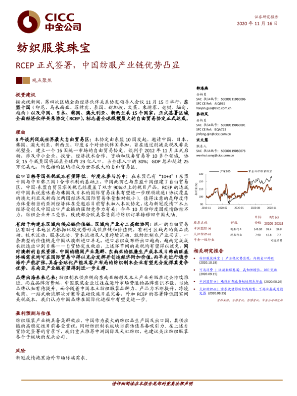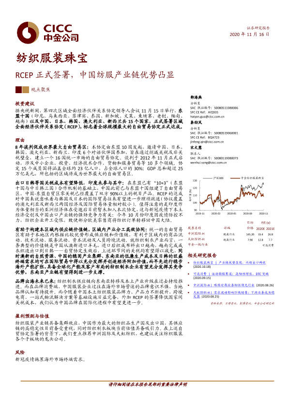 【中金公司】【20201116】纺织服装珠宝:RCEP正式签署,中国纺服产业链优势凸显-13页