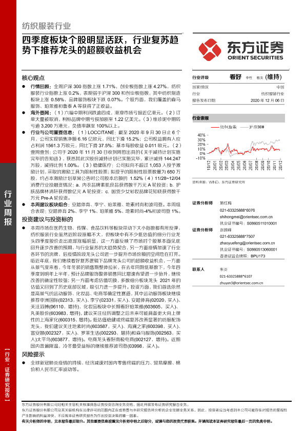 【东方证券】【20201206】纺织服装行业周报:四季度板块个股明显活跃,行业复苏趋势下推荐龙头的超额收益机会-11页