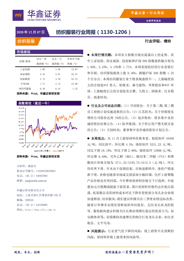 【华鑫证券】【20201207】20201207-华鑫证券-纺织服装行业周报-11页