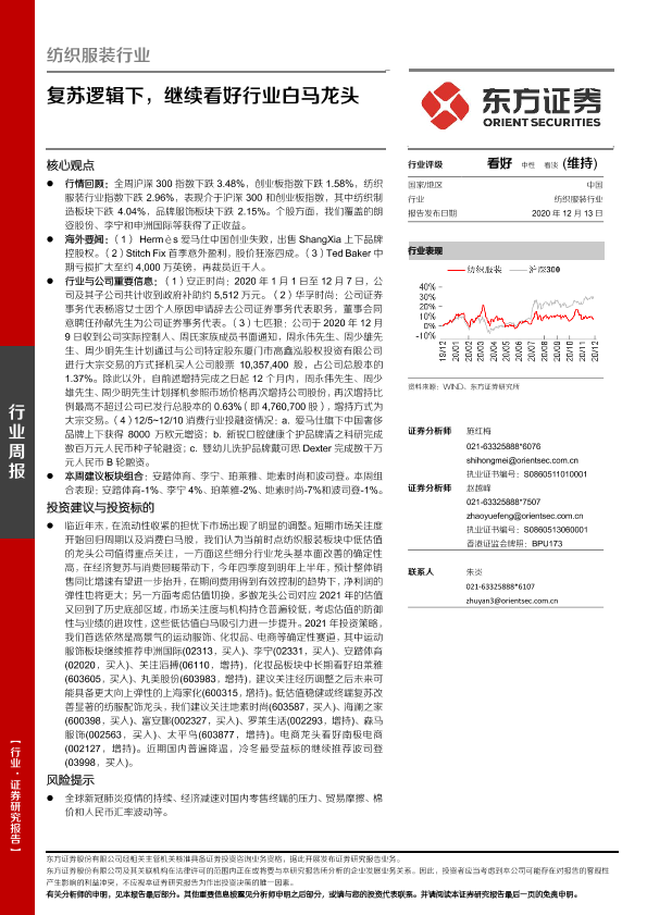 【东方证券】【20201213】20201213-东方证券-纺织服装行业周报:复苏逻辑下,继续看好行业白马龙头-9页