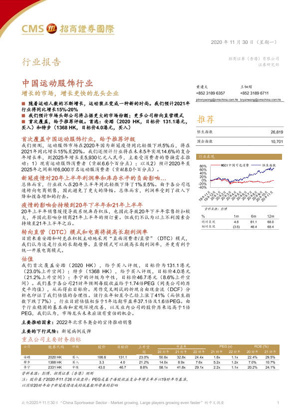【招商证券国际】【20201130】中国运动服饰行业:增长的市场,增长更快的龙头企业-57页
