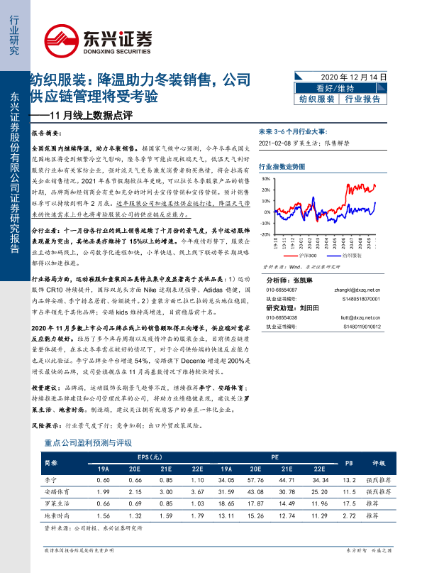 【东兴证券】【20201214】纺织服装11月线上数据点评:降温助力冬装销售,公司供应链管理将受考验-12页
