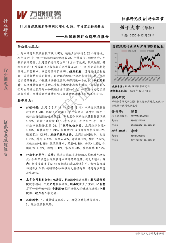 【万联证券】【20201221】11月纺织服装零售额同比增长4.6%,市场需求持续释放-9页