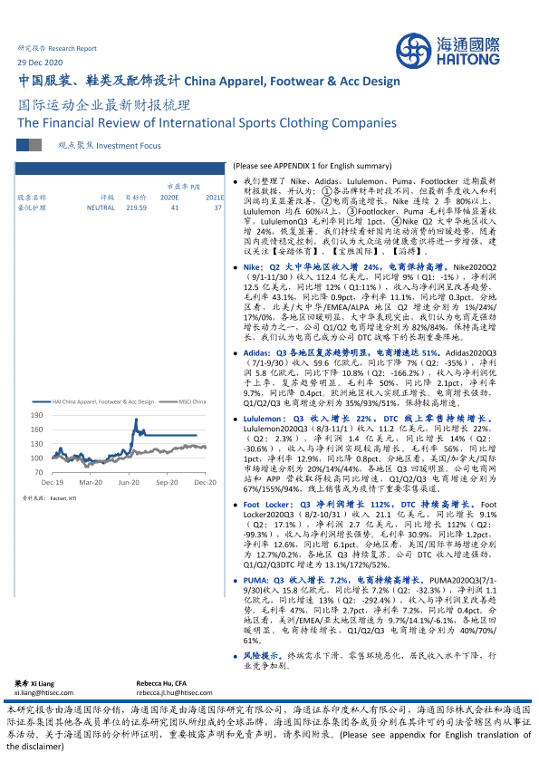 【海通国际】【20201229】中国服装、鞋类及配饰设计:国际运动企业最新财报梳理-13页