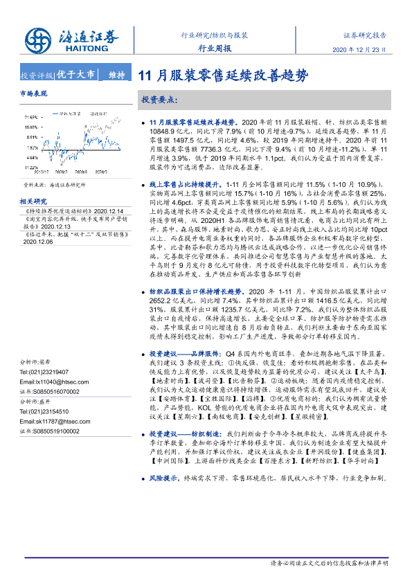 【海通证券】【20201223】20201223-海通证券-纺织与服装行业周报:11月服装零售延续改善趋势-7页