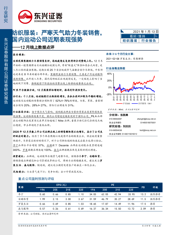 【东兴证券】【20210113】20210113-东兴证券-12月线上数据点评:纺织服装:严寒天气助力冬装销售,国内运动公司近期表现强势-11页