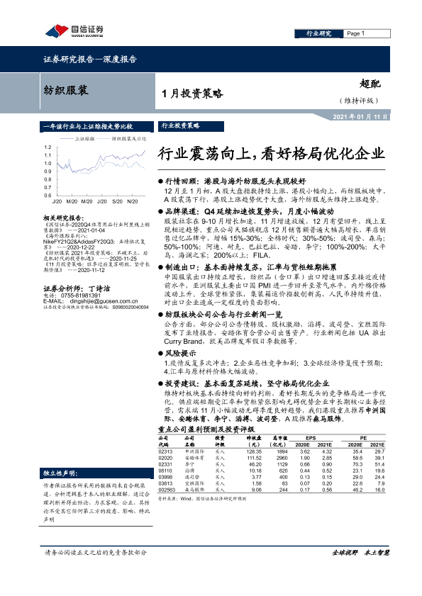 【国信证券】【20210111】20210111-国信证券-纺织服装1月投资策略:行业震荡向上,看好格局优化企业-27页
