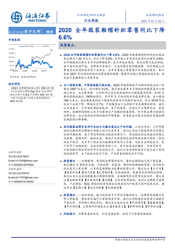 【海通证券】【20210125】20210125-海通证券-纺织与服装行业周报:2020全年服装鞋帽针织零售同比下降6.6%-7页