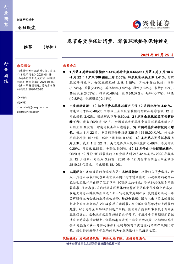 【兴业证券】【20210125】20210125-兴业证券-纺织服装行业周报:春节备货季促进消费,零售环境整体保持稳定-11页