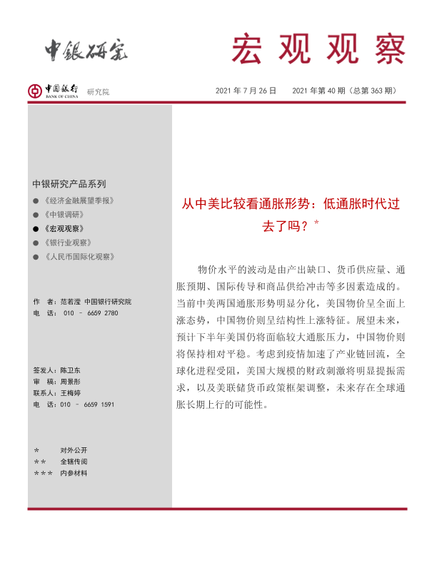 【中国银行研究院】【20210726】从中美比较看通胀形势:低通胀时代过去了吗?-17页