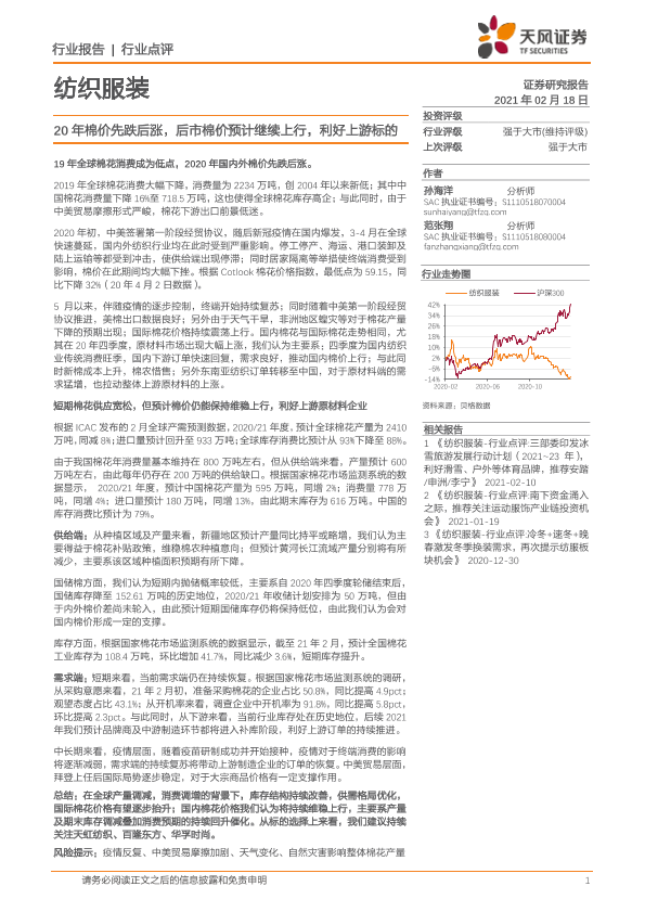 【天风证券】【20210218】纺织服装行业:20年棉价先跌后涨,后市棉价预计继续上行,利好上游标的-4页