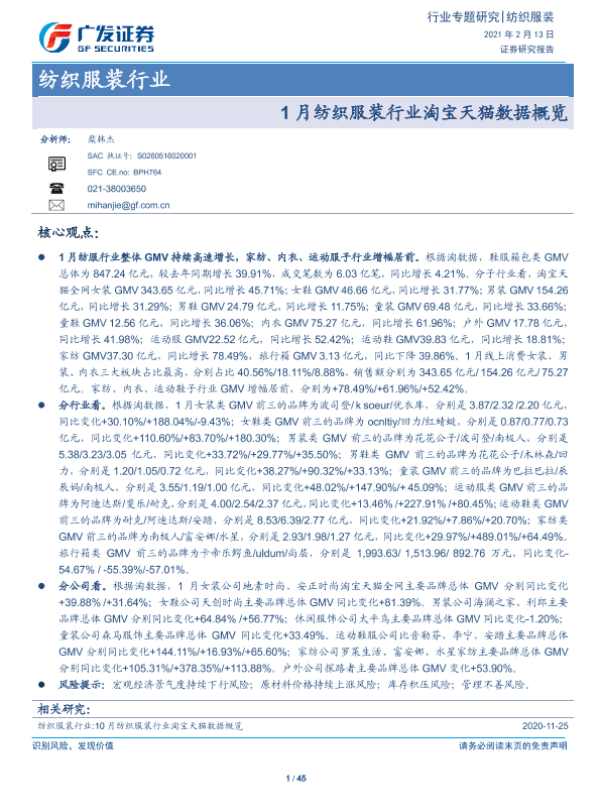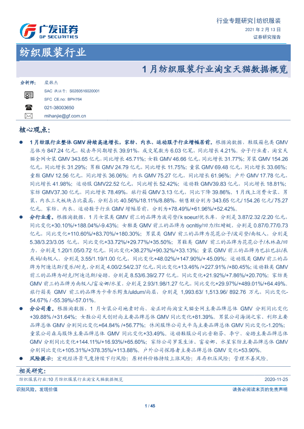 【广发证券】【20210213】20210213-广发证券-纺织服装行业专题研究:1月纺织服装行业淘宝天猫数据概览-45页