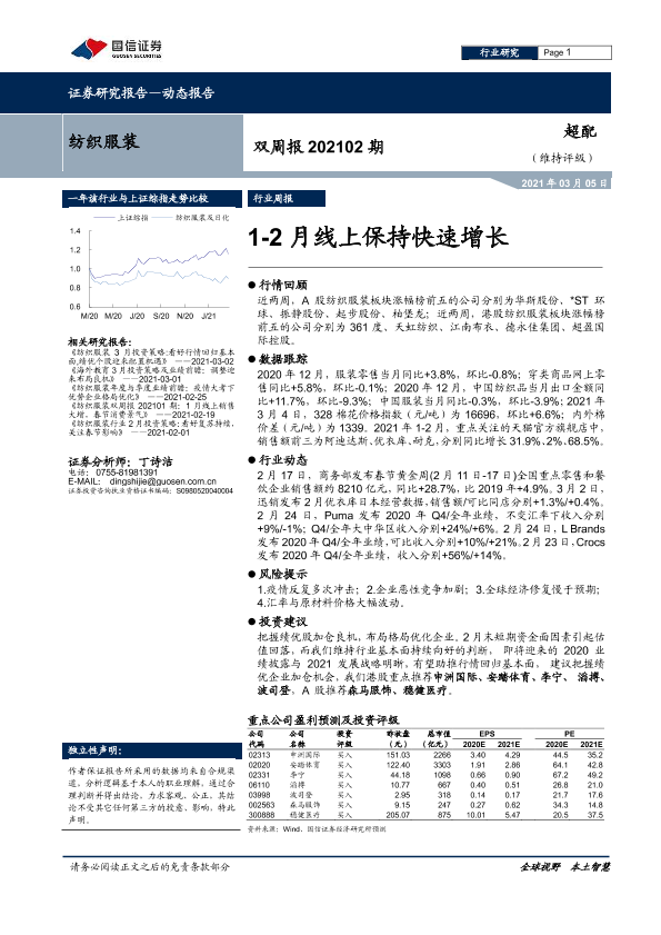 【国信证券】【20210305】20210305-国信证券-纺织服装双周报202102期:1-2月线上保持快速增长-6页