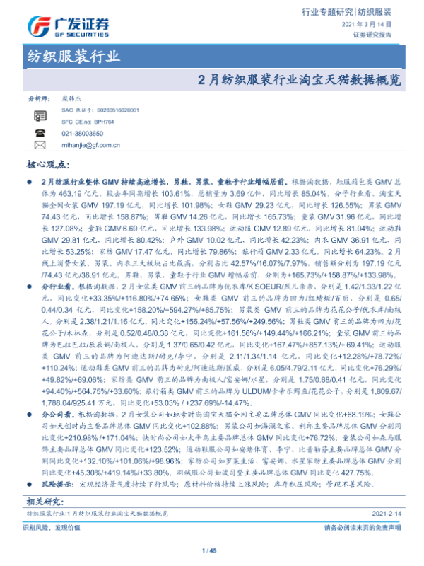 【广发证券】【20210314】20210314-广发证券-纺织服装行业专题研究:2月纺织服装行业淘宝天猫数据概览-45页