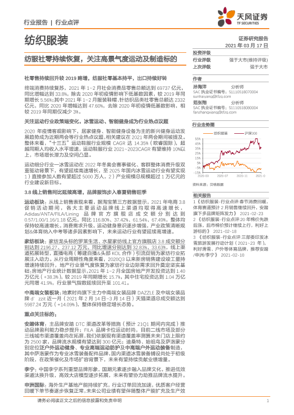 【天风证券】【20210317】纺织服装行业点评:纺服社零持续恢复,关注高景气度运动及制造标的-3页
