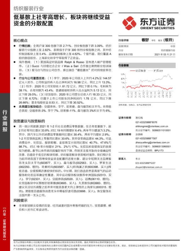 【东方证券】【20210321】20210321-东方证券-纺织服装行业周报:低基数上社零高增长,板块将继续受益资金的分散配置-10页
