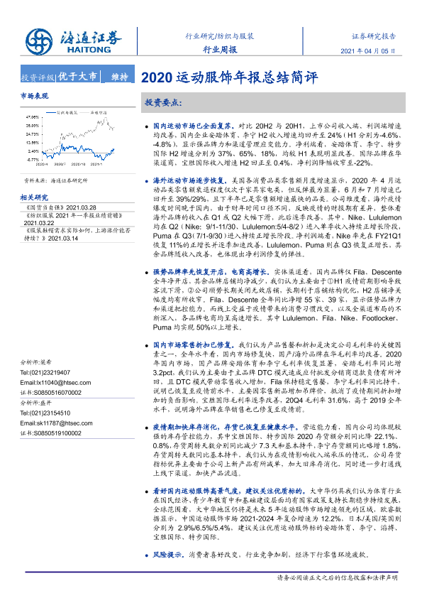 【海通证券】【20210405】20210405-海通证券-纺织与服装行业周报:2020运动服饰年报总结简评-7页