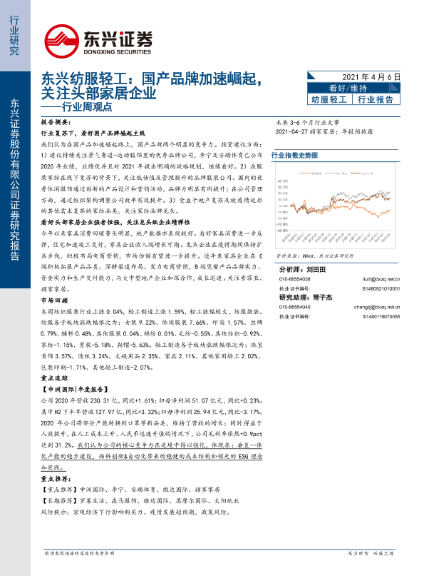 【东兴证券】【20210406】东兴证券-纺服轻工行业周观点:国产品牌加速崛起,关注头部家居企业-10页