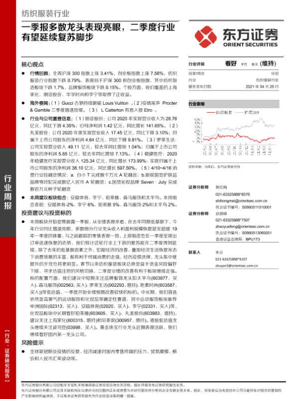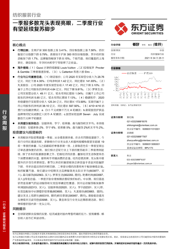 【东方证券】【20210425】20210425-东方证券-纺织服装行业周报:一季报多数龙头表现亮眼,二季度行业有望延续复苏脚步-8页