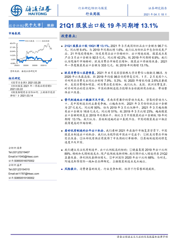 【海通证券】【20210418】20210418-海通证券-纺织与服装行业周报:21Q1服装出口较19年同期增13.1%-7页