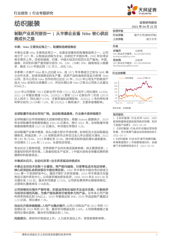 【天风证券】【20210422】纺织服装:制鞋产业系列报告一 从丰泰企业看Nike核心供应商成长之路-18页