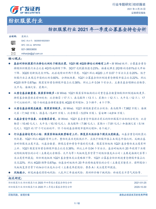 【广发证券】【20210425】纺织服装行业2021年一季度公募基金持仓分析-12页