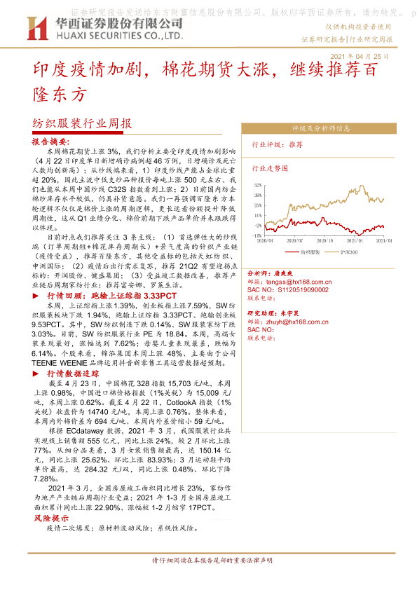 【华西证券】【20210425】纺织服装行业周报:印度疫情加剧,棉花期货大涨,继续推荐百隆东方-17页