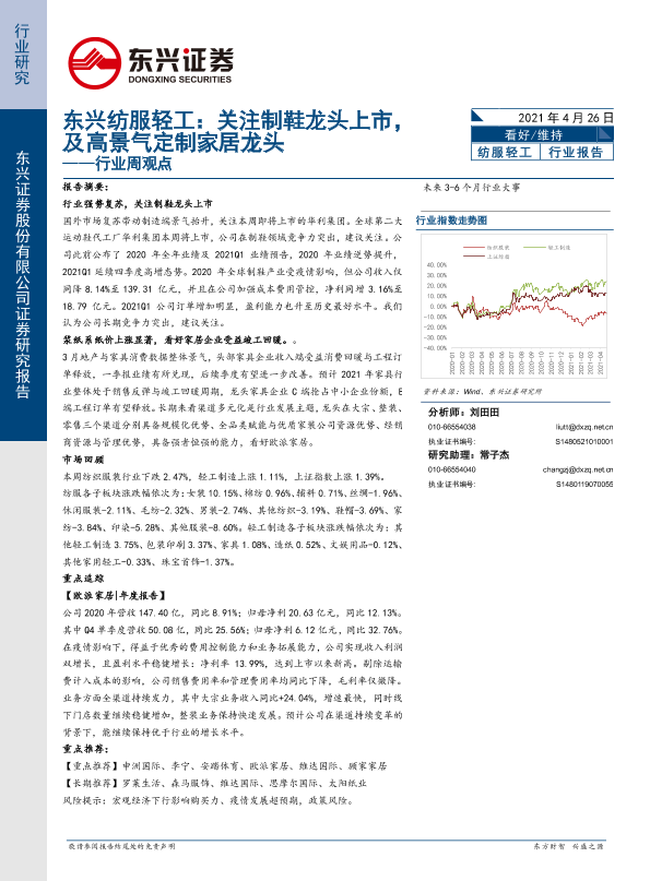 【东兴证券】【20210426】东兴纺服轻工行业周观点:关注制鞋龙头上市,及高景气定制家居龙头-10页