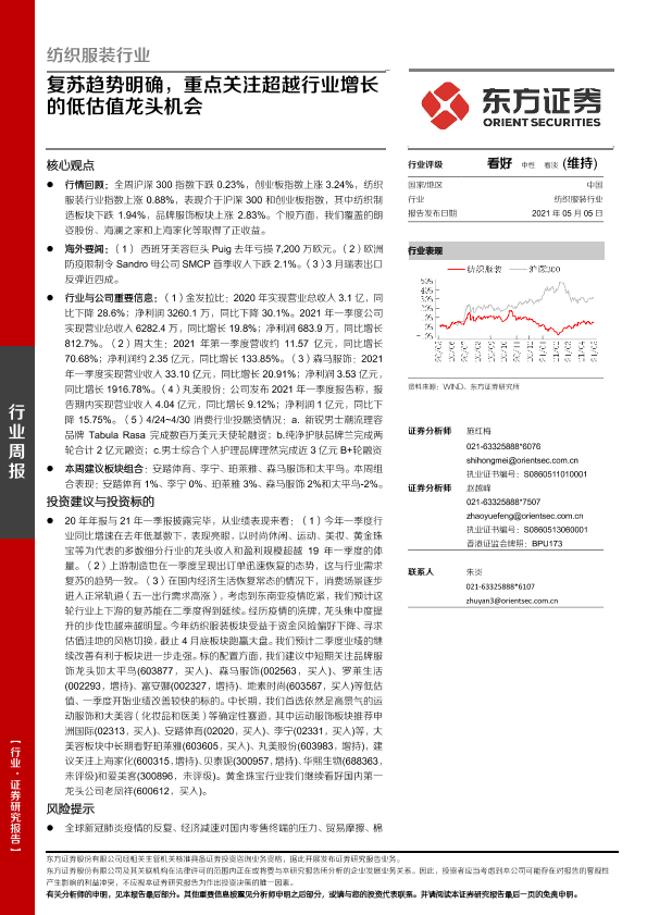 【东方证券】【20210505】20210505-东方证券-纺织服装行业周报:复苏趋势明确,重点关注超越行业增长的低估值龙头机会-11页