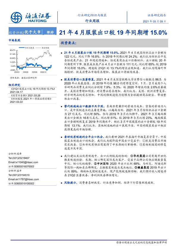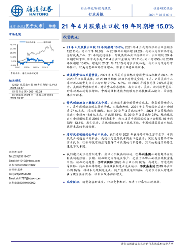 【海通证券】【20210509】21年4月服装出口较19年同期增15.0%-7页