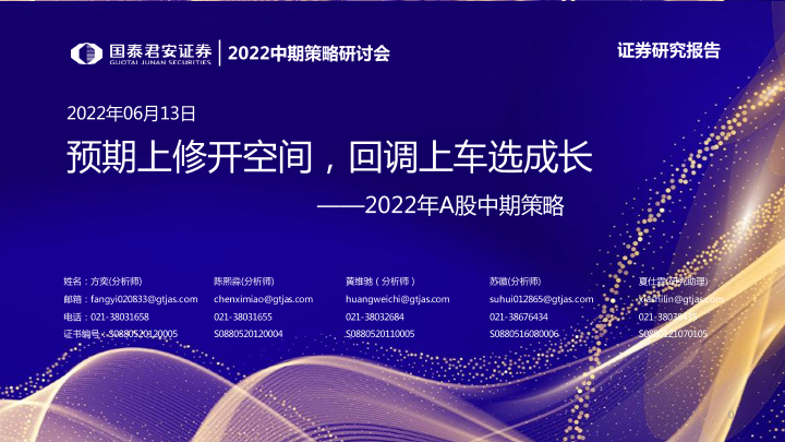 【国泰君安证券】【20220613】2022年A股中期策略:预期上修开空间,回调上车选成长-51页