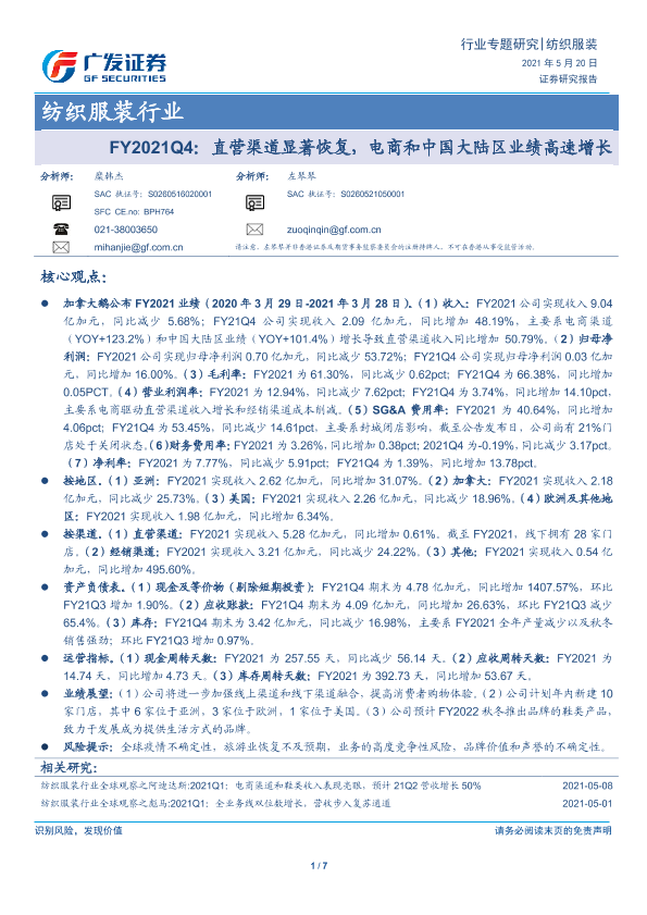 【广发证券】【20210520】FY2021Q4:直营渠道显著恢复,电商和中国大陆区业绩高速增长-7页