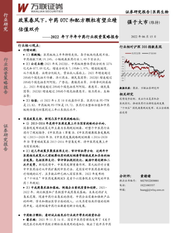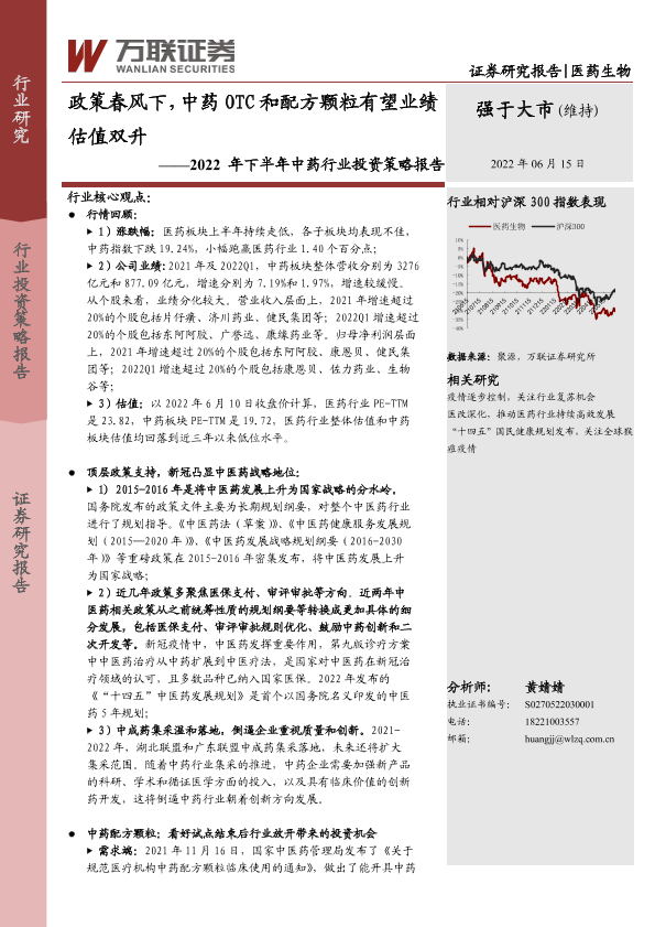 【万联证券】【20220615】2022年下半年中药行业投资策略报告:政策春风下,中药OTC和配方颗粒有望业绩估值双升-22页