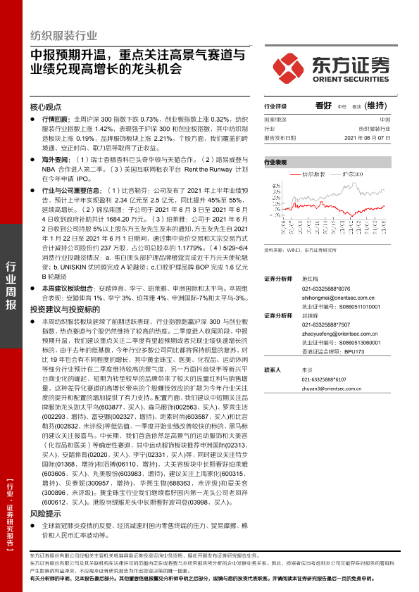 【东方证券】【20210607】20210607-东方证券-纺织服装行业周报:中报预期升温,重点关注高景气赛道与业绩兑现高增长的龙头机会-11页