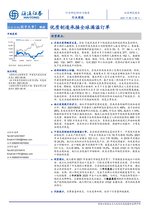 【海通证券】【20210606】20210606-海通证券-纺织与服装行业周报:优质制造承接全球满溢订单-7页