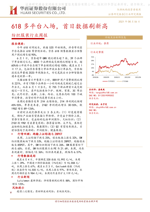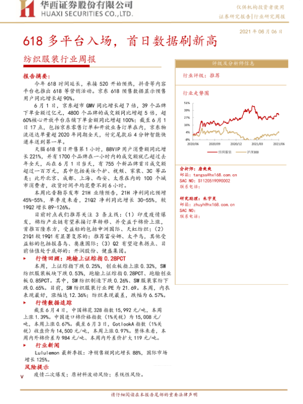 【华西证券】【20210606】纺织服装行业周报:618多平台入场,首日数据刷新高-15页