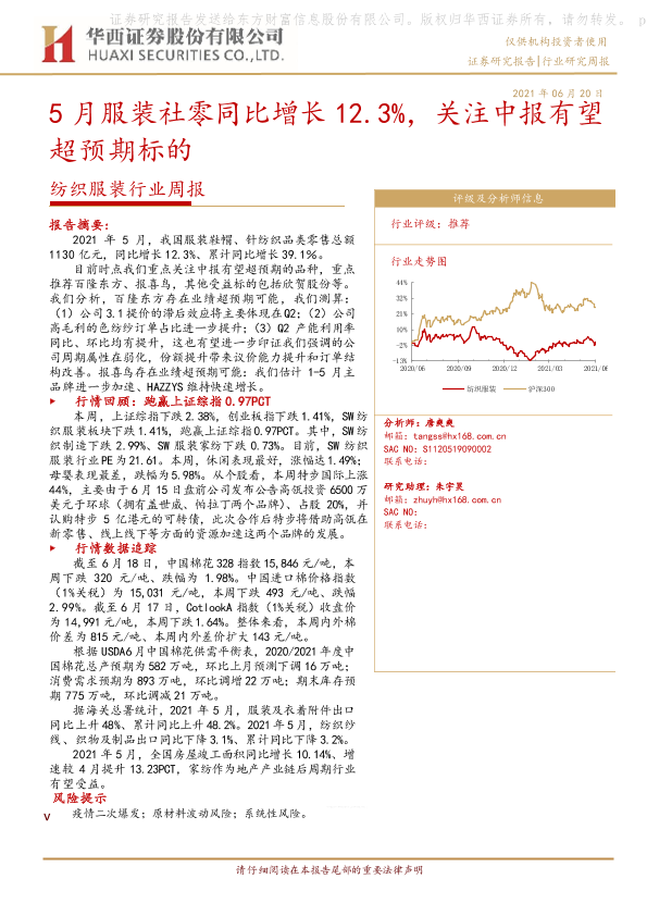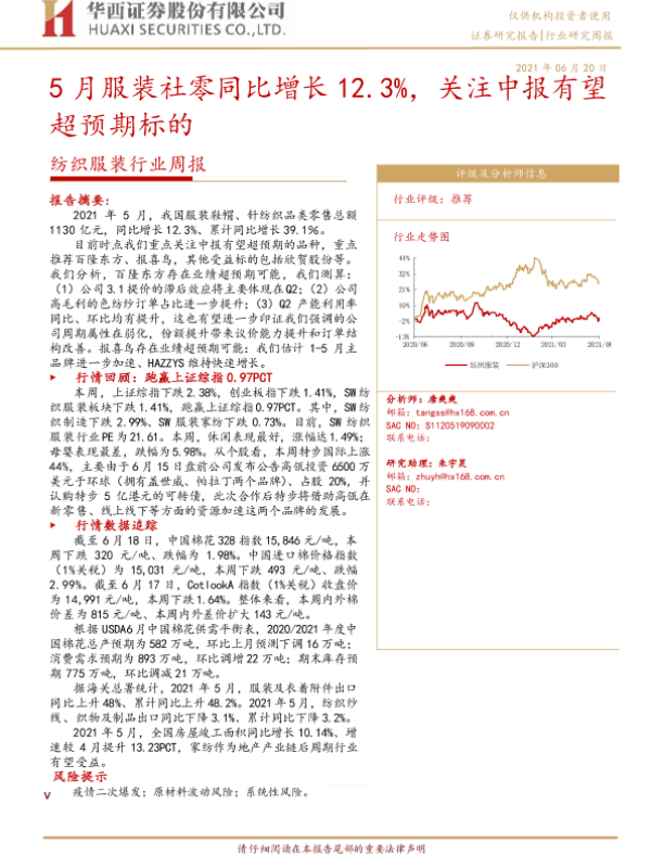 【华西证券】【20210620】5月服装社零同比增长12.3%,关注中报有望超预期标的-18页
